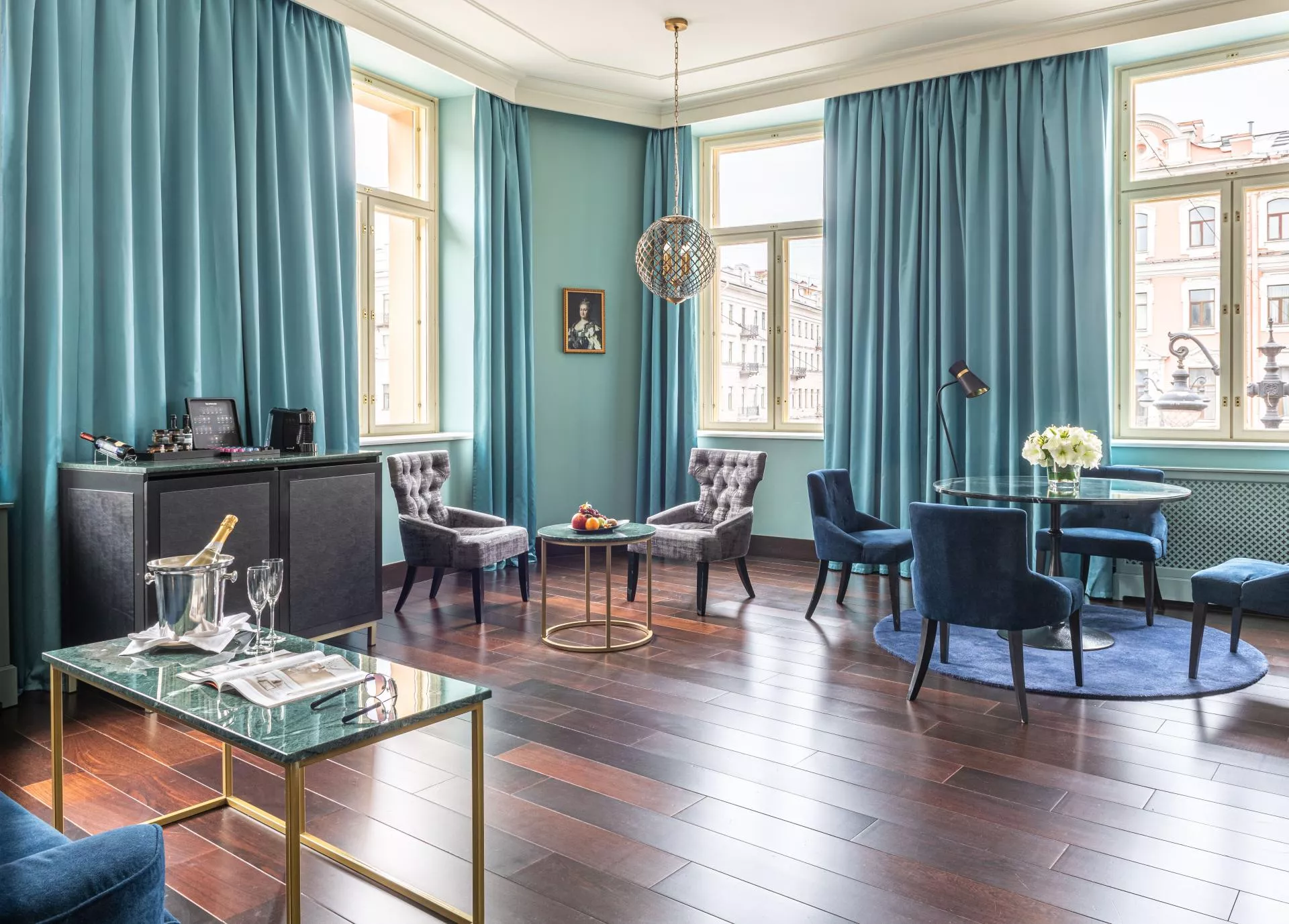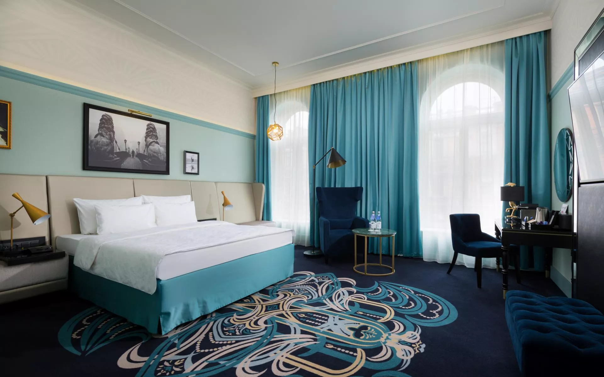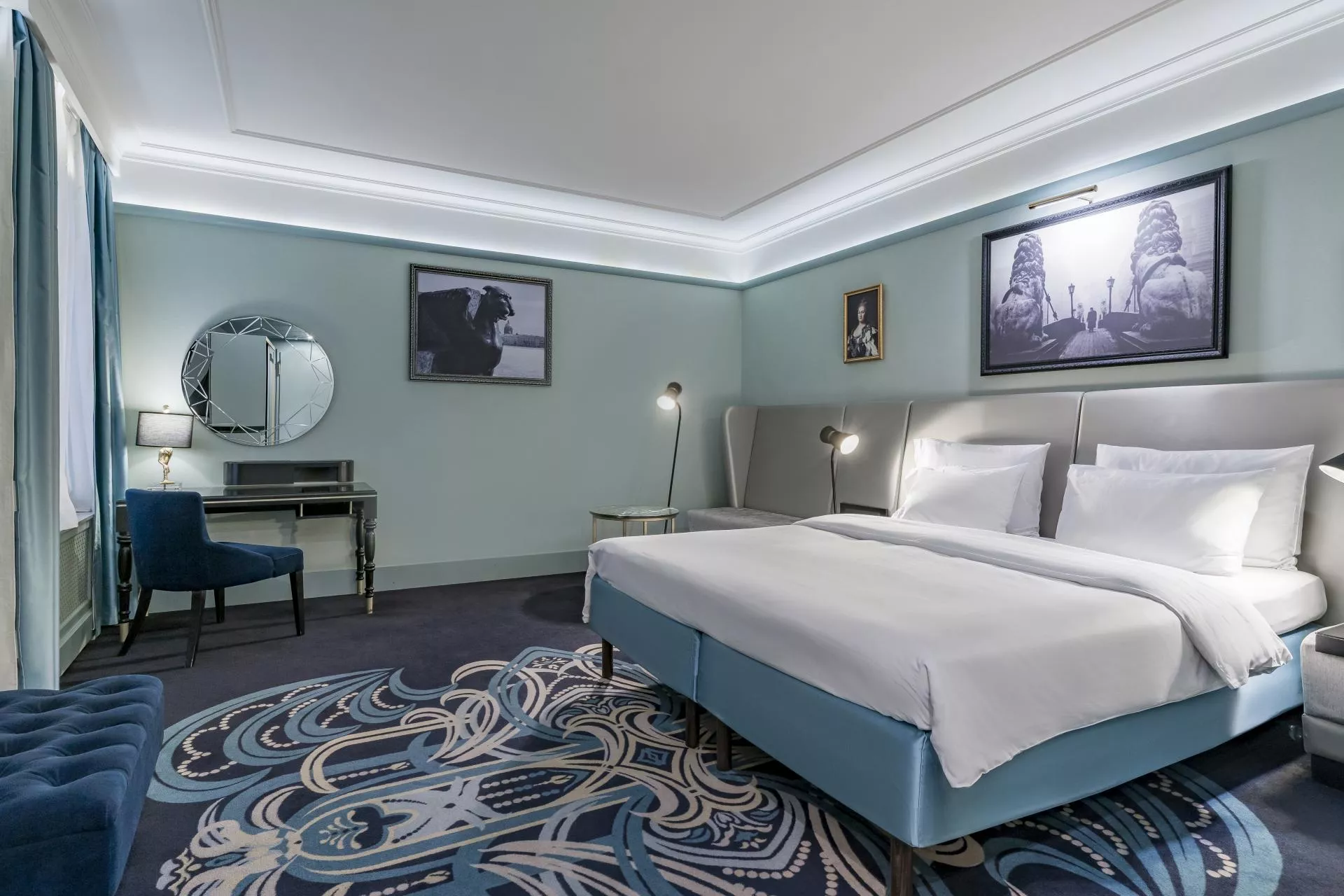 Номера отеля Cosmos Selection Saint-Petersburg Nevsky Royal Hotel спроектированы известной шведской компанией Lundwall Architects (LWA). В любом из 164 элегантных номеров в гостинице на Невском, с безупречным классическим декором и широким выбором услуг каждый гость, без преувеличения, почувствует себя королевской особой. Все номера выдержаны в нео-классическом стиле, а уникальный декор выполнен в традиционной цветовой палитре в оттенках синего - от светлых и легких до насыщенных. Почти в каждом номере вы увидите работы петербургского нуар-фотографа Бориса Смелова, мастера «интуитивной» фотографии и городских пейзажей.