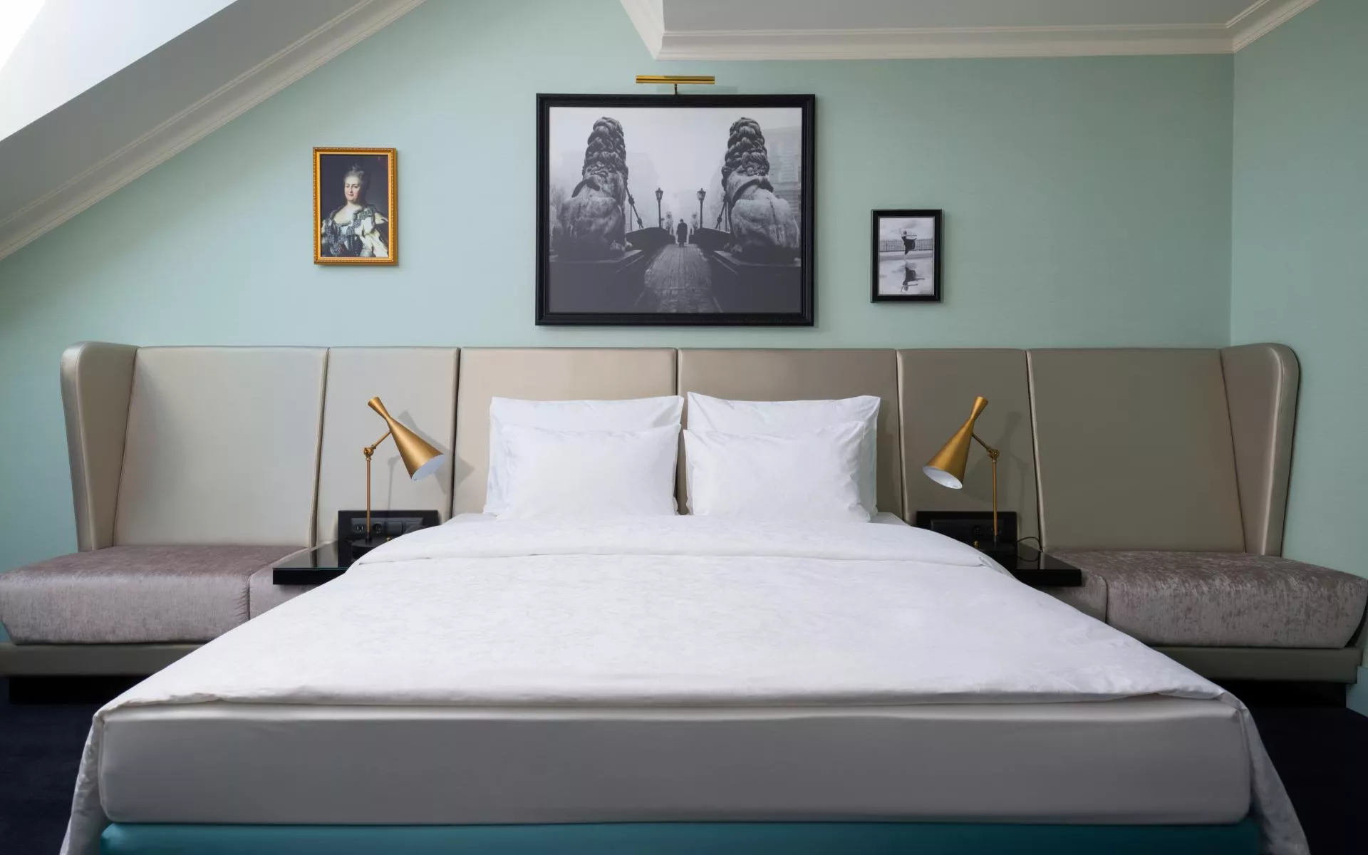 Стены номера расписаны художниками вручную изображениями Лахта Центра, Газпром Арены и других знаковых современных достопримечательностей Санкт-Петербурга.