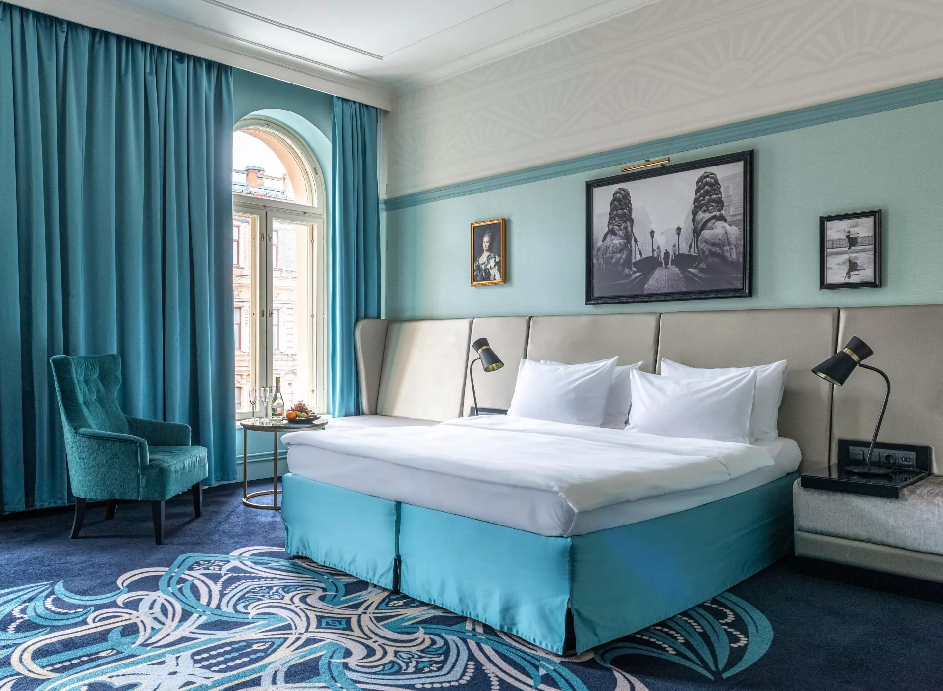 Стены номера расписаны художниками вручную изображениями Лахта Центра, Газпром Арены и других знаковых современных достопримечательностей Санкт-Петербурга.